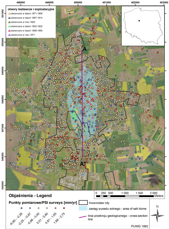 W trakcie interpretacji głównym problemem, a jednocześnie ograniczeniem była zupełnie odmienna skala obserwacji powierzchniowych (pomiary PS i morfologia terenu) i przestrzennego modelu wgłębnej budowy geologicznej wysadu Inowrocław i jego otoczenia. Mając na uwadze, że wartość merytoryczna modelu przestrzennego jest uwarunkowana głównie stopniem rozpoznania geologicznego obszaru objętym analizą, obserwacje przybierają formę ogólnych trendów.